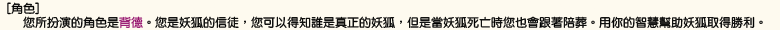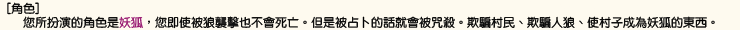 然後,如果占卜到妖狐的話妖狐將會死亡。占卜師是妖狐的天敵。