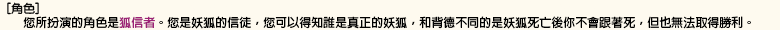 雖然是屬於妖狐隊伍,但是就算被占卜也是顯示「村民」。