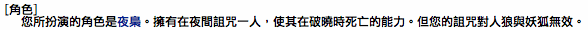 在晚上可以用只有人狼才聽得懂的嚎叫聲,在人狼之間進行對話。