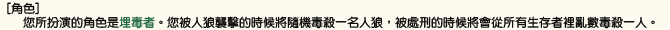 雖然是屬於人狼隊伍,但是就算被占卜也是顯示「村民」。